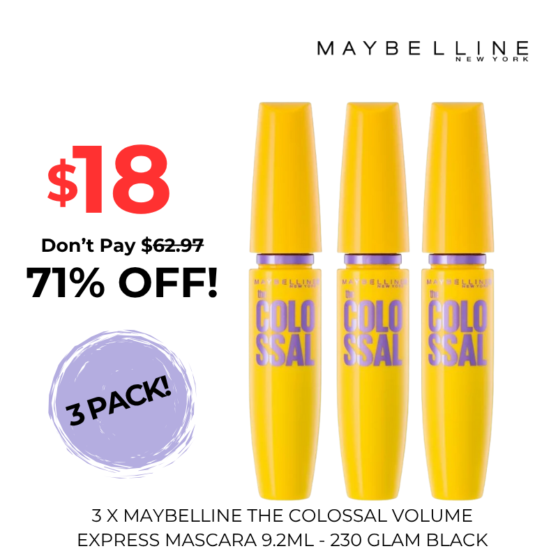 3 x Maybelline Lash Sensational Sky High Washable Mascara 7.2mL - 01 Very Black