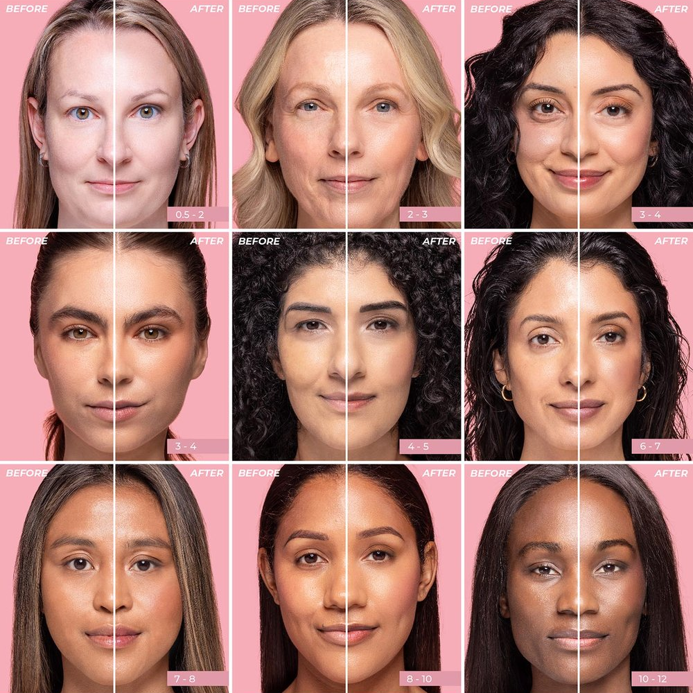 Apply a small amount to your face, blending evenly with your fingertips or a brush. For a natural look, use sparingly and build coverage as needed. Use daily for a radiant glow.