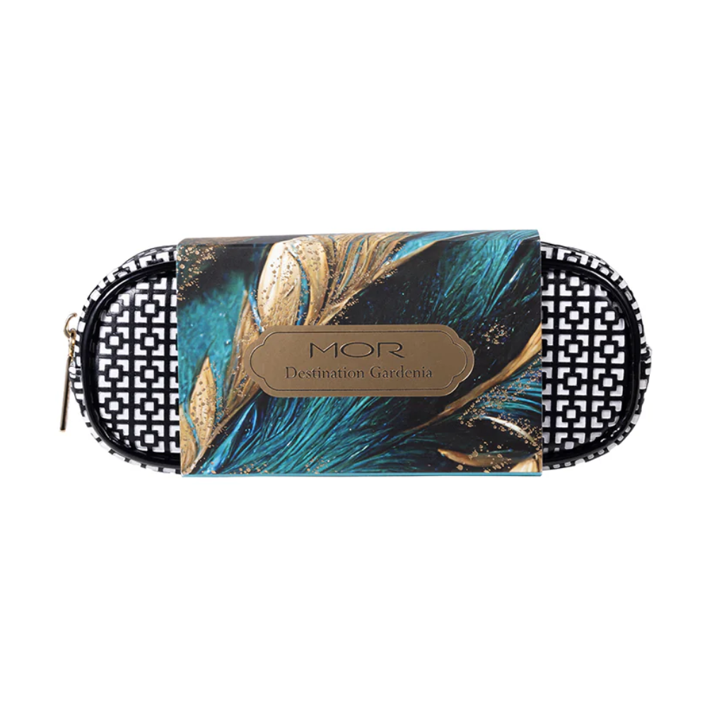 MOR Boutique's Destination Gardenia gift set awaits with a nourishing Perfume Oil in the classical fragrance of Snow Gardenia encased in a New York Pencil Case. The Perfume Oil contains Rosehip, Vitamin E, and Sweet Almond Oil, flourishing with fragrance for silky-soft skin. Ideal for travel and on-the-go luxury, this chic and compact Destination New York Pencil Case can keep all your beauty necessities within quick reach while youre on the go.
